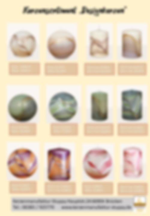 Bitte um Beachtung! Die hier im Onlineshop abgebildeten Kerzen sind reine Veranschauungsobjekte, jede Kerze fällt anders aus nach der Fertigung in Größe und Motiv.